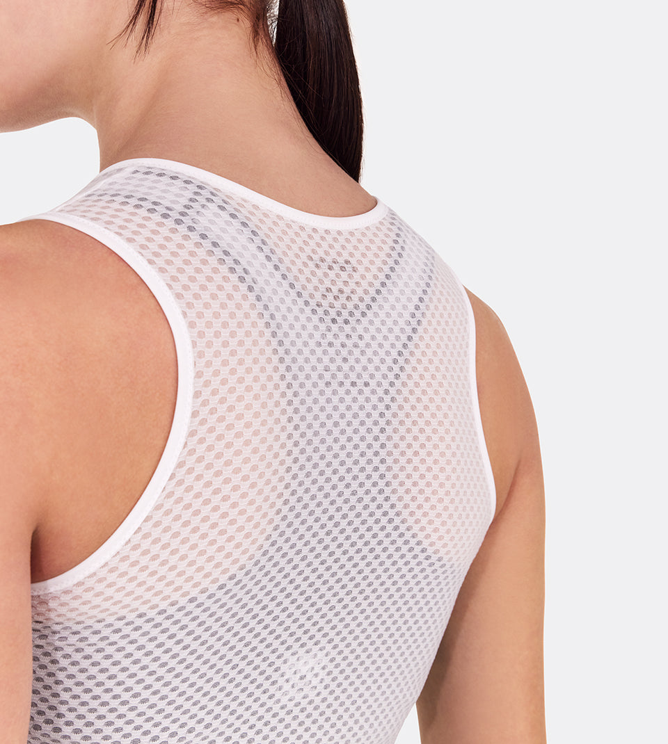 Sleeveless undershirt with a women's fit. Perfect fit thanks to the super breathable Avatar mesh and the elongated cut capable of providing maximum protection. Excellent elasticity thanks to the elastic seam on the bottom.