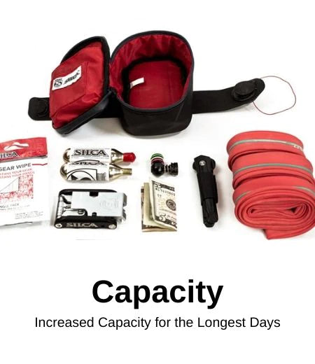 Use the power of BOA® to keep all your spare parts in one compact, rattle-free pack. The Grande can hold up to 3 road tubes and anything else you might need on the side of the road or trail.