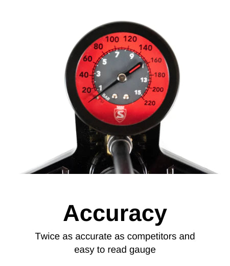 A pump designed to outlast the rest of your cycling gear. Combining a steel body, an Italian leather seal, and a highly accurate Swiss gauge, this pump can do it all. Disc chuck compatible