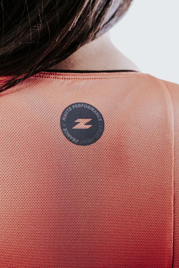 This trisuit features a vest-style upper body design, making it easy to put on and take off thanks to a full-length zipper and a lower torso handle that helps it stay in place while racing. This high-performance, high-speed trisuit has been designed to significantly improve aerodynamic efficiency and thus reduce drag during racing. This triathlon garment features laser-cut set-in sleeves with AeroFlux technology that extend down to the bicep and fully cover this muscle for an ideal fit thanks to the inner silicone band. Compared to bare skin, the addition of sleeves to the suit offers much better aerodynamics, especially when racing in a time trial position on the bike leg.
