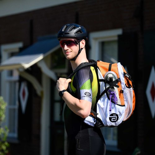 25L backpack. Ideal for training and traveling to competitions. Ventilated back with stretched mesh for greater carrying comfort. Numerous storage compartments, including side compartments for shoes, bottles, and helmet, allow for better drying after use. This is a very sturdy and functional bag to store all the necessary equipment thanks to the multiple compartments. Very good value for money.