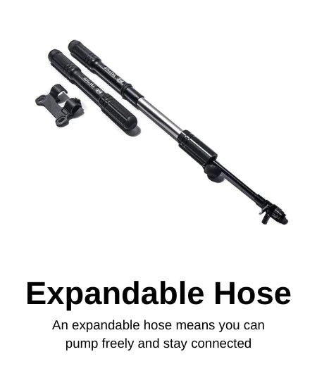 - Reverse Design: TATTICO is designed the reverse of most pumps. The hose and valve are hidden inside the inner tube rather than in the outer cylinder, providing up to 10% more air per stroke compared to pumps of similar length.