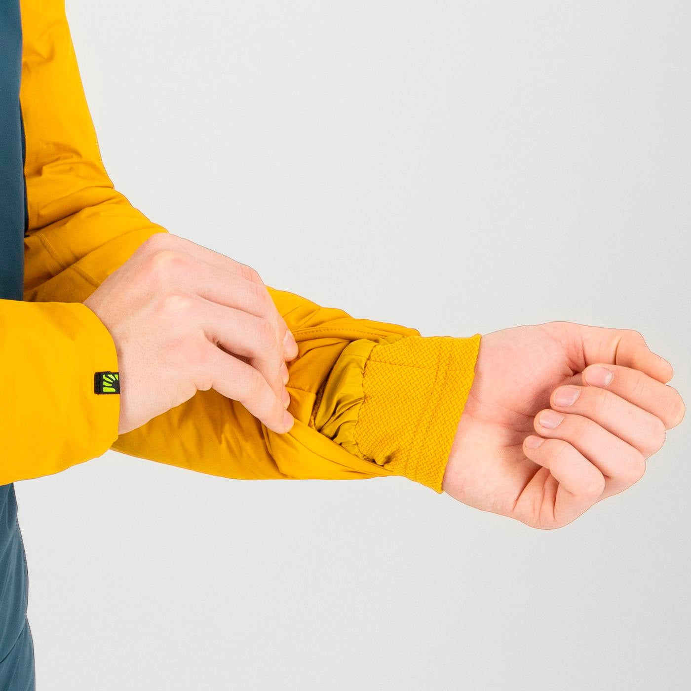 This jacket is made with a hybrid construction; the K-Dry fabric ensures waterproofing equivalent to a water column of 20,000 mm and breathability of 70,000 g/m²/24 h, while the thermal fleece panels on the hood, cuffs, inner sleeves and inner back provide comfort and warmth. Warmth is mainly provided by the PrimaLoft® Silver Active insulation: 100 grams on the sleeves and hood and 130 grams on the rest of the garment.