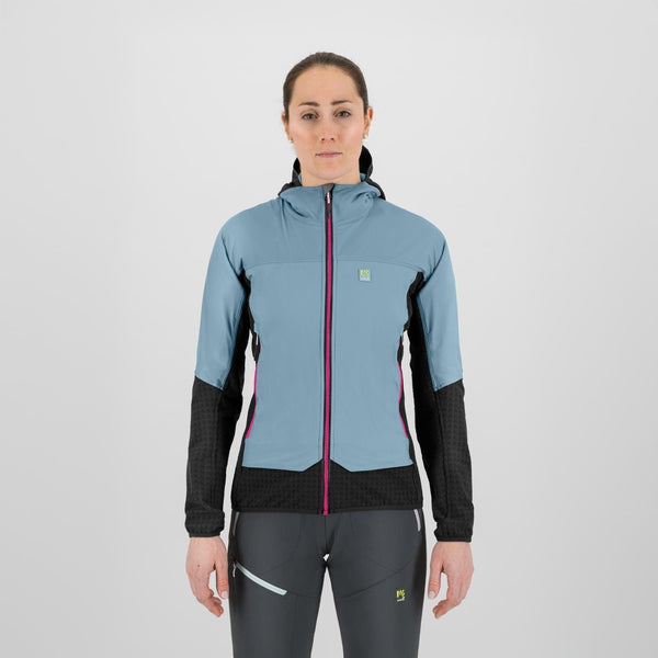 Veste de ski-alpinisme à la coupe ajustée. Idéale pour les activités aérobiques grâce à sa construction : chaude et coupe-vent à l'avant et respirante à l'arrière.