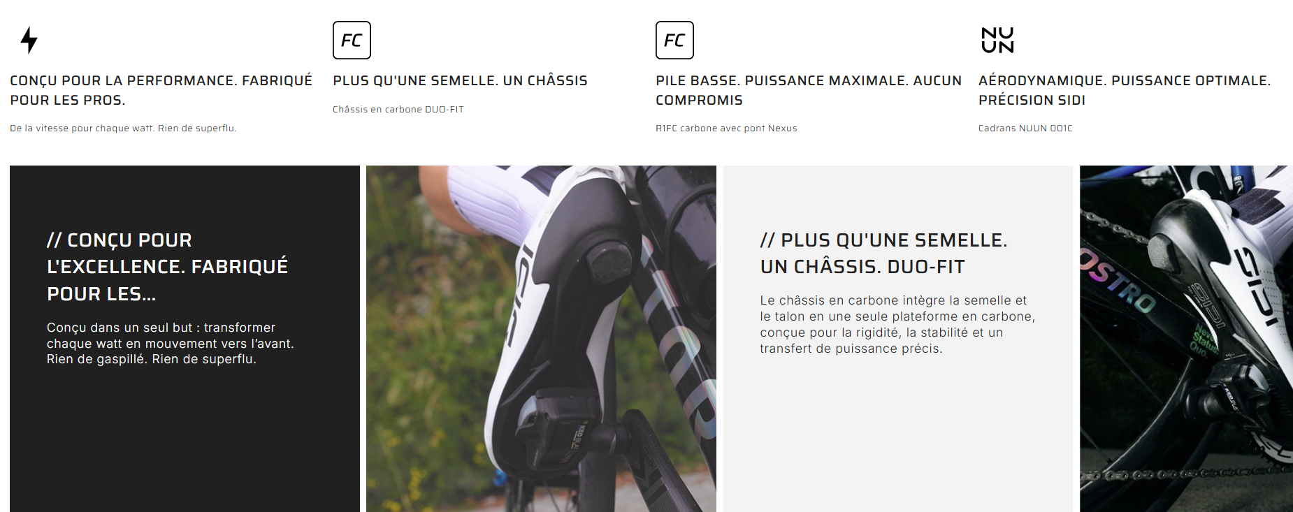 - Semelle extérieure : Carbone R1FC avec Nexus Bridge – indice de rigidité 12