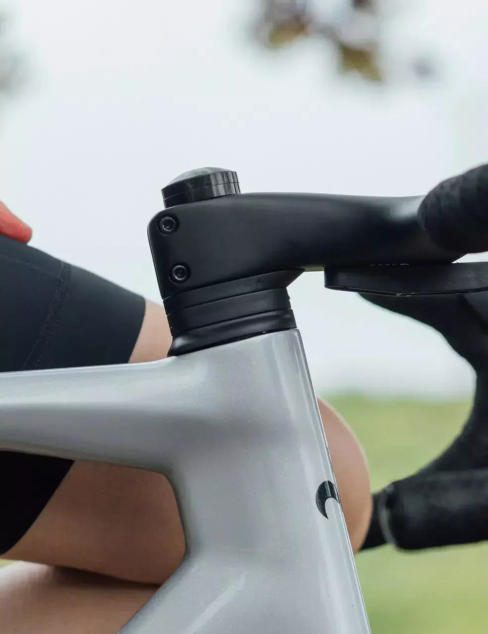 Cette combinaison de portée et d'empilement offre une position plus confortable sans avoir besoin d'entretoises entre la potence du guidon et le cadre. Combien de fois les cyclistes roulent-ils sur des vélos de course purs avec des entretoises de quelques centimètres sur le tube de direction ? Avec Granturismo SLR, la moto paraîtra plus harmonieuse, bien proportionnée et équilibrée tout en conservant son caractère de course.