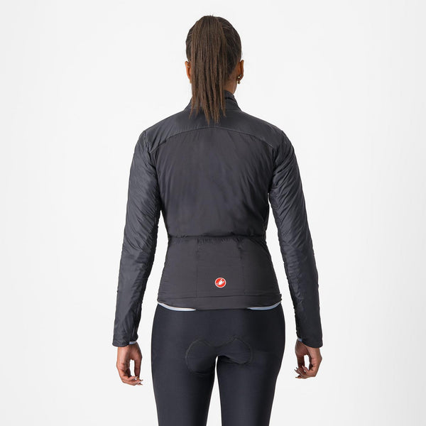 La partie externe est formée d’une microfibre tissée coupe-vent ultralégère, ayant subi un traitement DWR (imperméabilisation de longue durée)