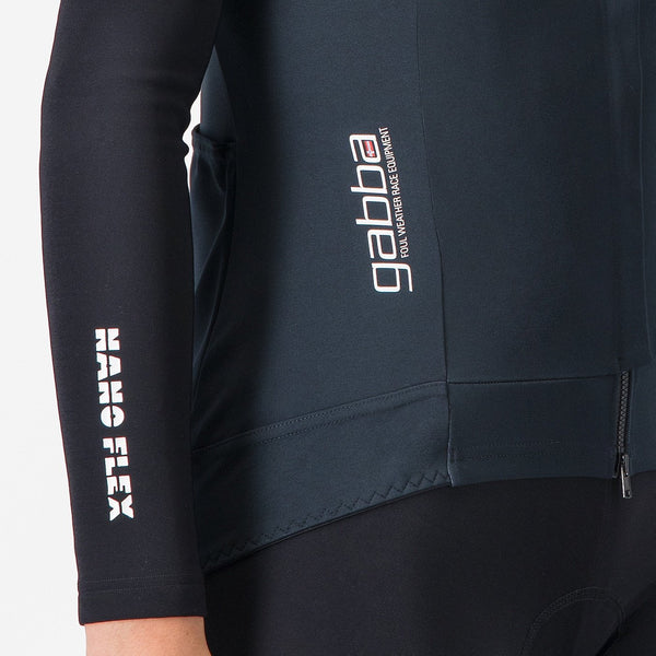En 2010, Castelli a présenté le modèle Gabba aux professionnels et changé la manière dont ils concourent sous la pluie et dans le froid. Et aussi la manière dont ils s’habillent pour les entraînements par temps frais. Il s’avère que le modèle Gabba est aussi l’article parfait pour les cyclistes non professionnels lorsque la météo est fraîche, car il garde votre buste chaud et sec sans pour autant être trop chaud. Le dernier modèle Gabba en est la cinquième génération et la version actuelle est principalement imperméable tout en conservant la respirabilité et la protection contre le vent qui rend depuis toujours le Gabba si performant. Il utilise deux tissus GORE-TEX INFINIUM™ WINDSTOPPER® exclusifs de Castelli distincts : l’un plus chaud et 100 % imperméable sur le devant, les épaules et les manches, et l’autre plus léger, plus respirant et plus extensible dans le dos, suffisant pour vous protéger des éclaboussures qui viennent heurter votre dos. Le « 2 » du nom fait référence aux mises à niveau qui ont été apportées à la dernière version, notamment une fermeture éclair YKK® Vislon® qui s’ouvre par le haut et par le bas, pour une ventilation plus facilement ajustable. La partie réfléchissante dans le dos est plus visible, la couture en haut des épaules a été déplacée dans le dos et les trois poches peuvent accueillir plus de choses. Généralement, on portera le modèle Gabba au-dessus d’une couche de base sans manches et d’un maillot à manches courtes et on l’associera à des manchettes Nano Flex si les conditions sont plus fraîches et/ou humides, ou à des manchettes Seamless si la météo est douce. Le modèle Gabba RoS 2 W est un incontournable pour les sorties en automne et au printemps.