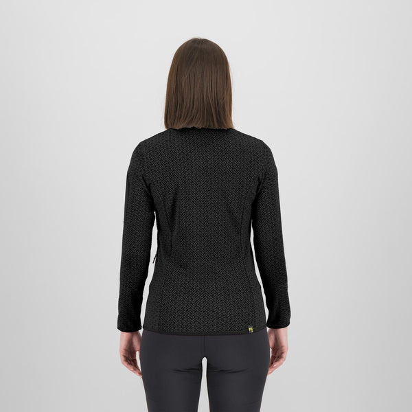 La polaire Mesdì est fabriquée avec un tissu 100 % recyclé, doux, élastique et respirant, idéal pour les activités aérobies hivernales. Son look permet aussi de le porter en loisirs.