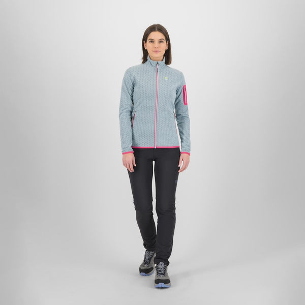 La polaire Mesdì est fabriquée avec un tissu 100 % recyclé, doux, élastique et respirant, idéal pour les activités aérobies hivernales. Son look permet aussi de le porter en loisirs.
