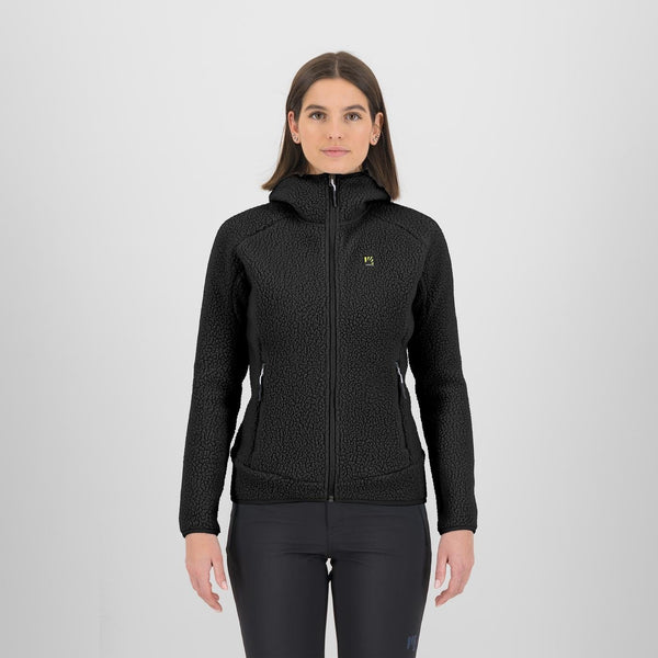 Porter notre Moiazza Retrò Hoodie W Fleece, c'est comme voyager dans le temps, en revenant aux mythiques années 80. Parfaite à utiliser comme couche intermédiaire sous une veste lors de conditions hivernales, elle s'intègrera également sans problème dans des contextes plus urbains et dans la vie quotidienne grâce à son look totalement vintage. Les deux spacieuses poches avant sont facilement accessibles.