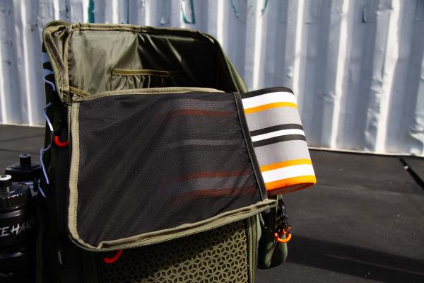 Ce sac à dos est doté de 3 sangles velcro sur le côté pour accrocher notre trousse multifonctions - la UT Case. Il est doté d'une double fermeture éclair et d'une poignée sur le dessus avec un mousqueton pour sécuriser la position sur le côté du sac. A l'intérieur, on retrouve une poche filet zippée d'un côté et 6 petits compartiments de l'autre côté pour transporter des produits d'hygiène et des crèmes. Cette trousse sera parfaite pour transporter de petits effets personnels avec un accès direct.
