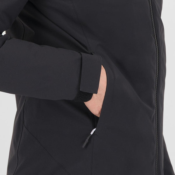 Entièrement imperméable, elle vous permet de rester au sec et au chaud en ville, même face aux éléments. Le tissu extérieur est 100 % recyclé avec une colonne d'eau de 10 000 mm et une respirabilité de 10 000 g/m²/24 h, avec traitement DWR sans ajout intentionnel de PFAS. L'isolation synthétique pèse 150 g sur le corps et 130 g sur les manches. La veste est dotée d'une fermeture éclair avant à double curseur pour la garder en place même en conduisant, de deux poches avant fermées, de deux poches intérieures et d'une capuche avec double cordon de serrage.