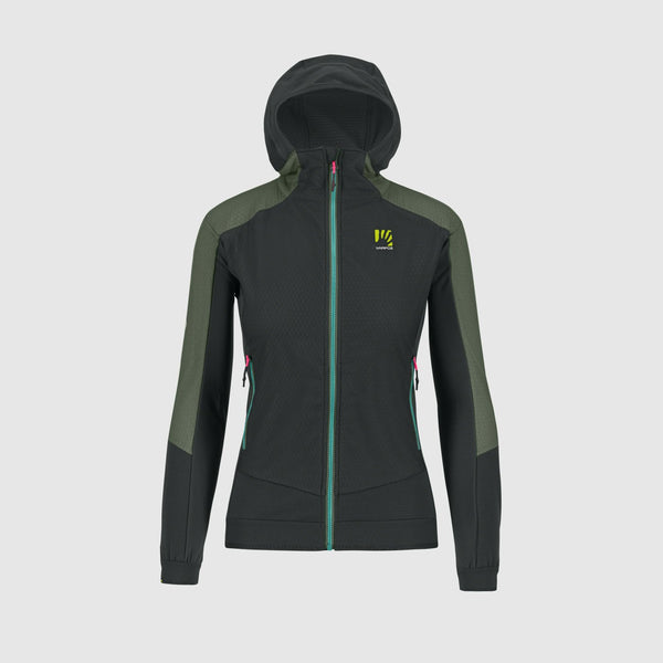Veste idéale pour la montée comme pour la descente, dotée de nombreuses caractéristiques techniques offrant protection contre le vent, chaleur et respirabilité. Conçue pour le ski-alpinisme.