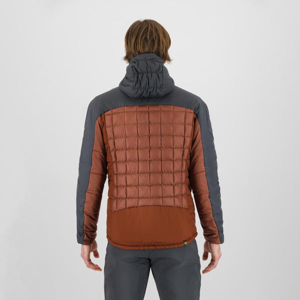 Légère, compacte et respirante, elle offre un haut niveau de chaleur grâce à son isolation hybride, avec du PrimaLoft® Silver Active 100 sur les manches, la capuche, les côtés et le bas, et du K-Synthetic Down Micro sur la partie centrale. En bref, un vêtement chaud et protecteur, pour un poids pratique de 495 grammes.