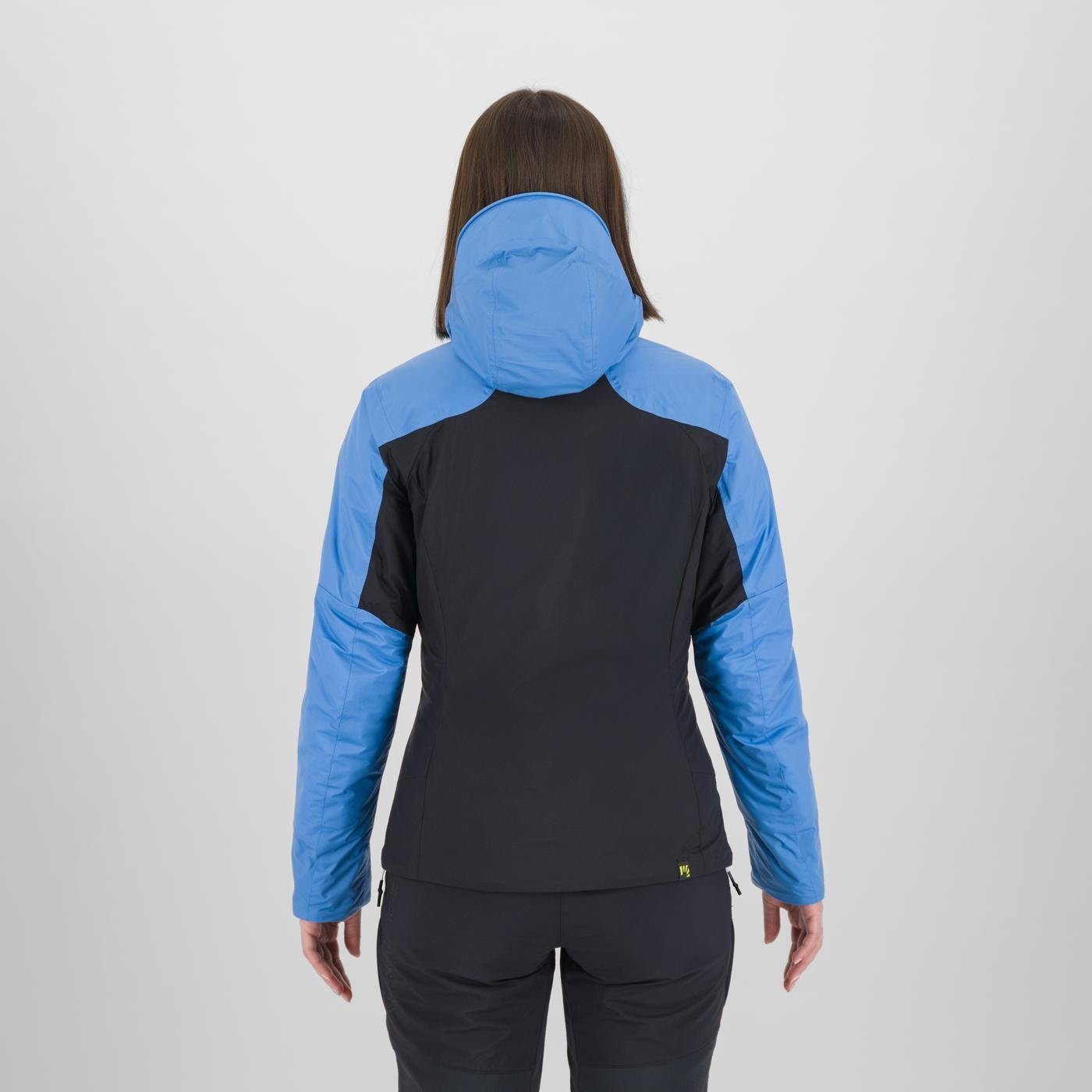 Cette veste est fabriquée avec une construction hybride ; le tissu K-Dry assure une imperméabilité équivalente à une colonne d'eau de 20 000 mm et une respirabilité de 70 000 g/m²/24 h, tandis que les empiècements en polaire thermique sur la capuche, les poignets, l'intérieur des manches et l'intérieur du dos offrent confort et chaleur. La chaleur est principalement assurée par l'isolation PrimaLoft® Silver Active : 100 grammes sur les manches et la capuche et 130 grammes sur le reste du vêtement.
