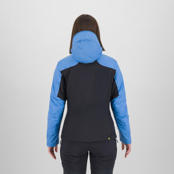 Cette veste est fabriquée avec une construction hybride ; le tissu K-Dry assure une imperméabilité équivalente à une colonne d'eau de 20 000 mm et une respirabilité de 70 000 g/m²/24 h, tandis que les empiècements en polaire thermique sur la capuche, les poignets, l'intérieur des manches et l'intérieur du dos offrent confort et chaleur. La chaleur est principalement assurée par l'isolation PrimaLoft® Silver Active : 100 grammes sur les manches et la capuche et 130 grammes sur le reste du vêtement.