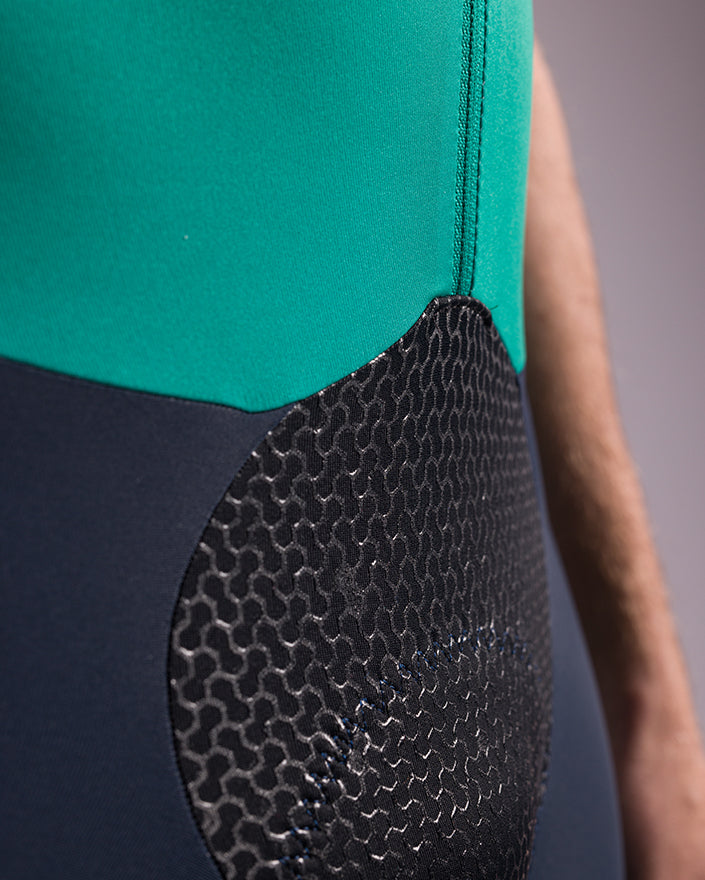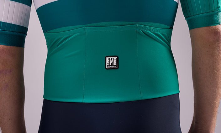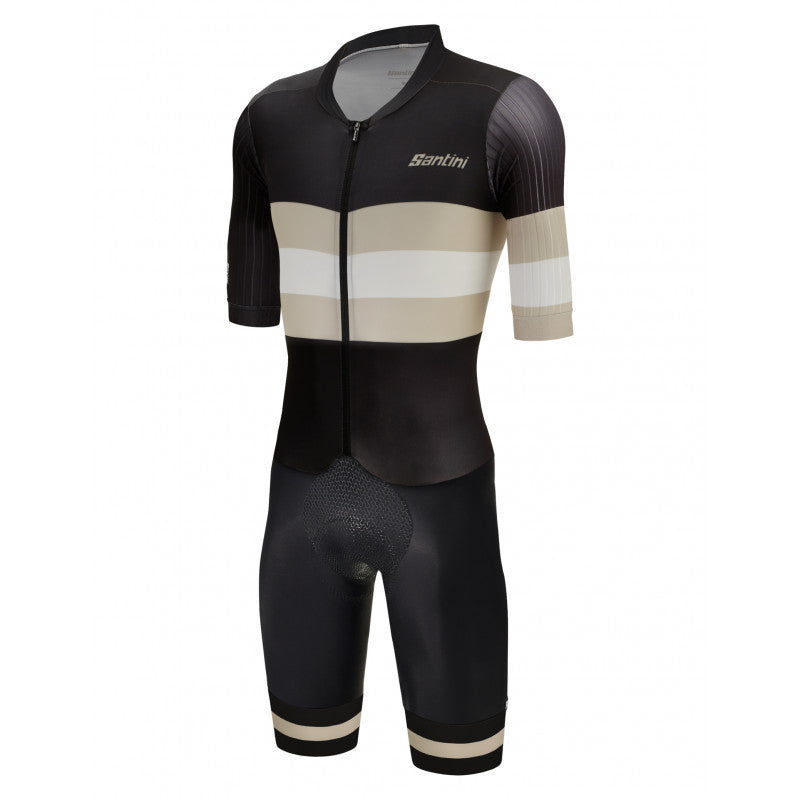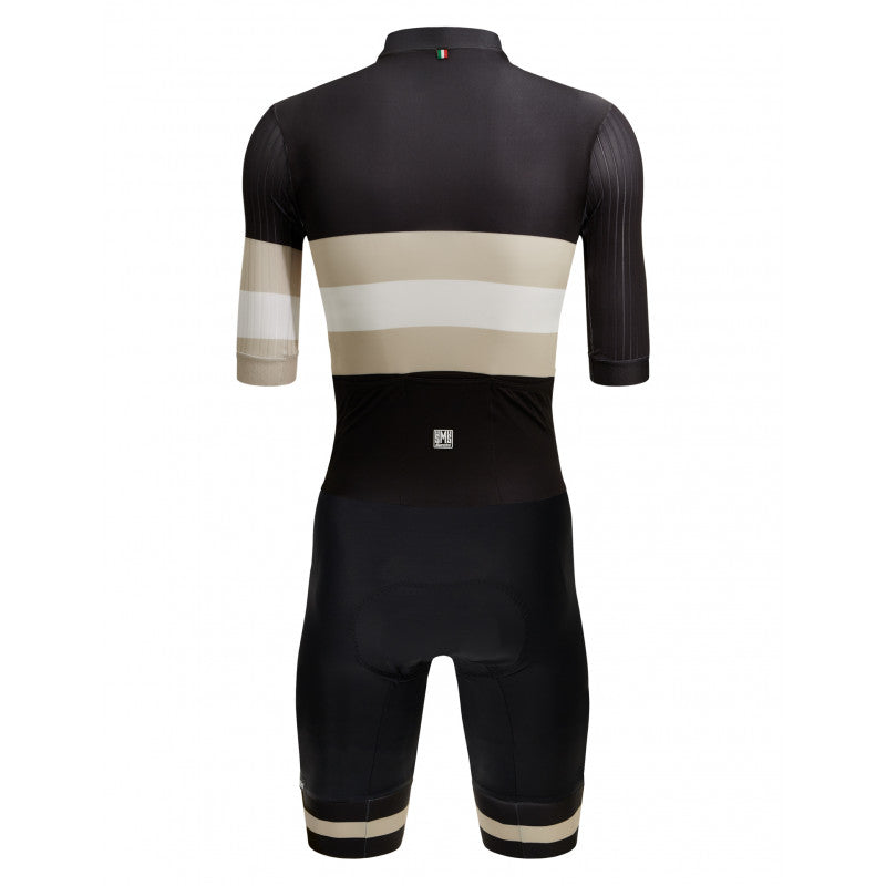 Manches en tissu stretch Highspeed, avec montage à rayures verticales pour favoriser au maximum l'aérodynamisme. Grip sur le bas de manche pour maintenir le body toujours bien en place. Partie inférieure en tissu compact et hautement élastique made in Italy, avec technologie power compression. Exerce une compression moyenne, sans serrer. Incroyablement résistant, il conserve ses caractéristiques dans le temps. Bas de jambe avec empiècement imprimé et grip interne.