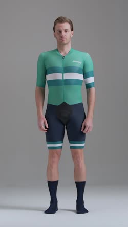 Coupe seconde peau, manches plus longues et cuissard ajusté avec tissu coupe brute sur les poignets et les cuisses pour un profil encore plus aérodynamique.